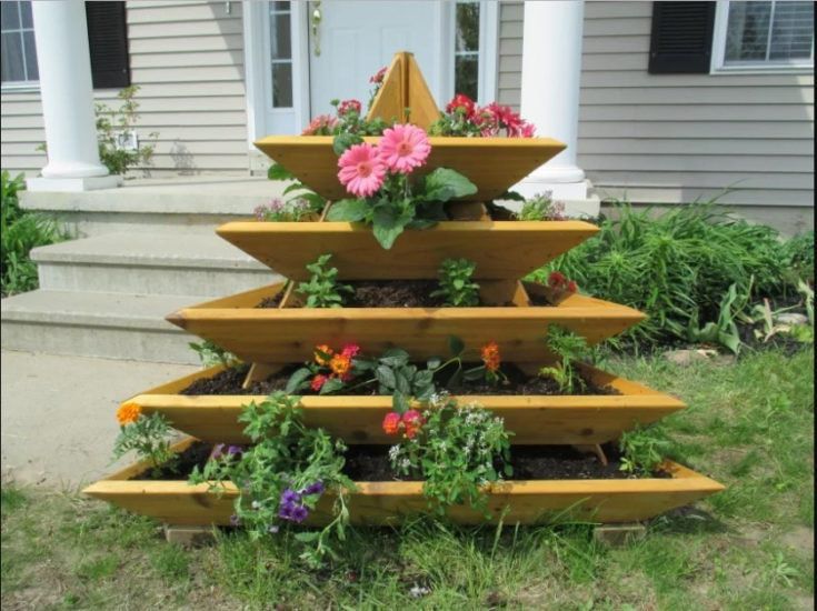 Emeletes virágágyás piramis formájú. Praktikus könnyen összeállítható és szétszedhető, Formájának köszönhetően mutatós dísze lehet kertjének. Natúr és festett kivitelben, tartós időjárásálló.